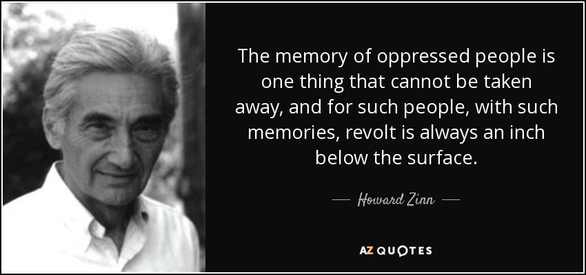 The memory of oppressed people is one thing that cannot be taken away, and for such people, with such memories, revolt is always an inch below the surface.