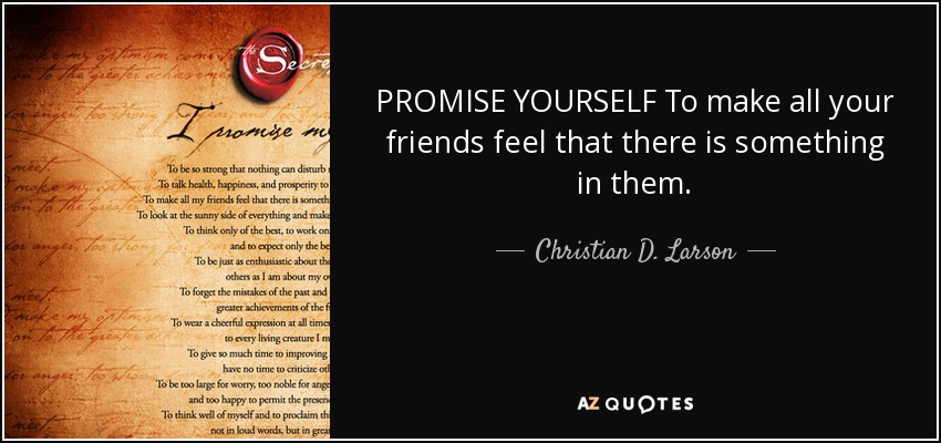 PROMISE YOURSELF To make all your friends feel that there is something in them.