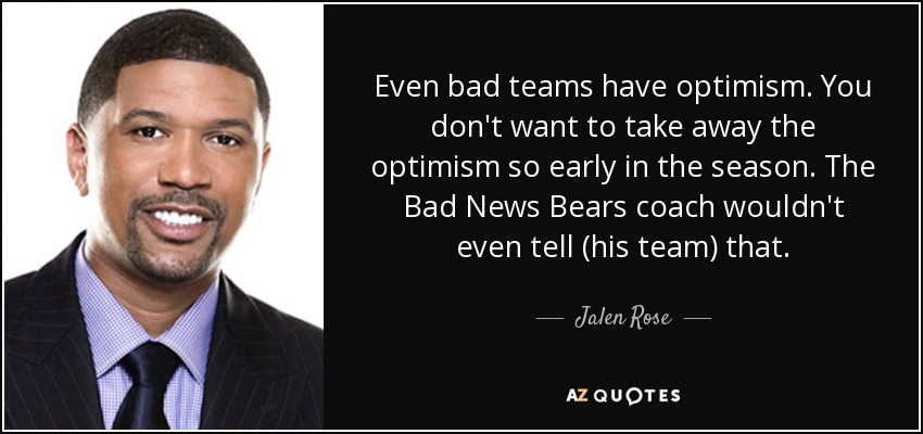 Even bad teams have optimism. You don't want to take away the optimism so early in the season. The Bad News Bears coach wouldn't even tell (his team) that.