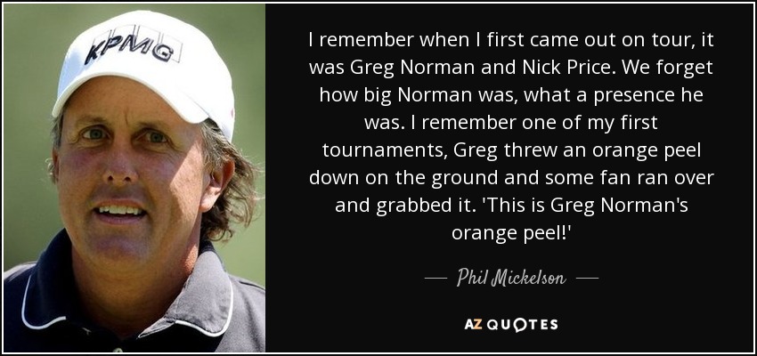 I remember when I first came out on tour, it was Greg Norman and Nick Price. We forget how big Norman was, what a presence he was. I remember one of my first tournaments, Greg threw an orange peel down on the ground and some fan ran over and grabbed it. 'This is Greg Norman's orange peel!'