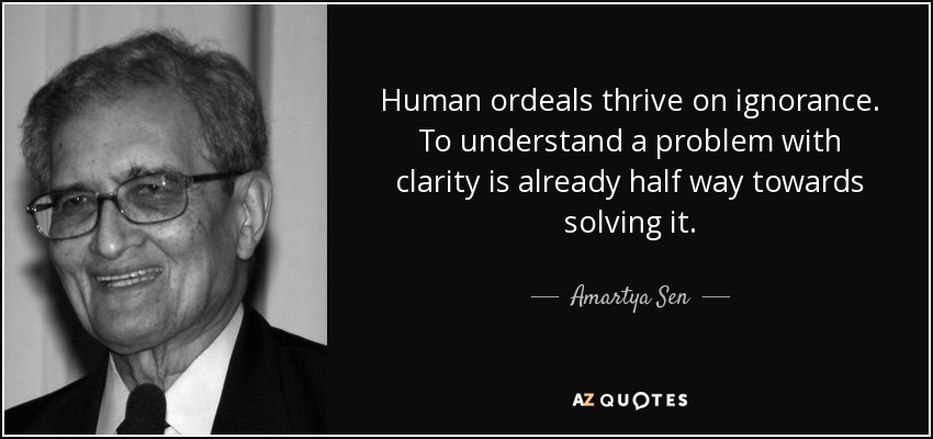 Human ordeals thrive on ignorance. To understand a problem with clarity is already half way towards solving it.