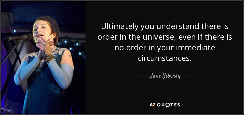 Ultimately you understand there is order in the universe, even if there is no order in your immediate circumstances.