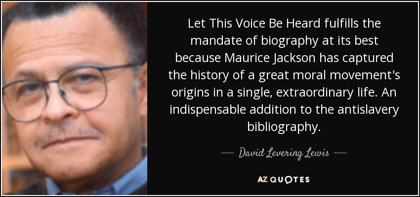 Let This Voice Be Heard fulfills the mandate of biography at its best because Maurice Jackson has captured the history of a great moral movement's origins in a single, extraordinary life. An indispensable addition to the antislavery bibliography.