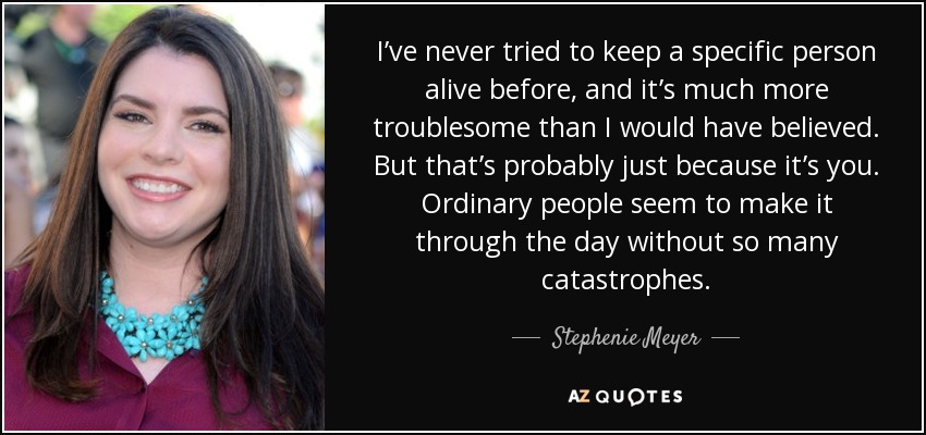 I’ve never tried to keep a specific person alive before, and it’s much more troublesome than I would have believed. But that’s probably just because it’s you. Ordinary people seem to make it through the day without so many catastrophes.