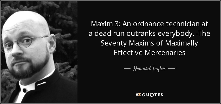 Maxim 3: An ordnance technician at a dead run outranks everybody. -The Seventy Maxims of Maximally Effective Mercenaries