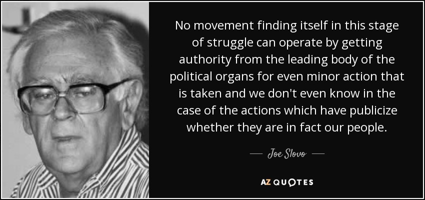 No movement finding itself in this stage of struggle can operate by getting authority from the leading body of the political organs for even minor action that is taken and we don't even know in the case of the actions which have publicize whether they are in fact our people.