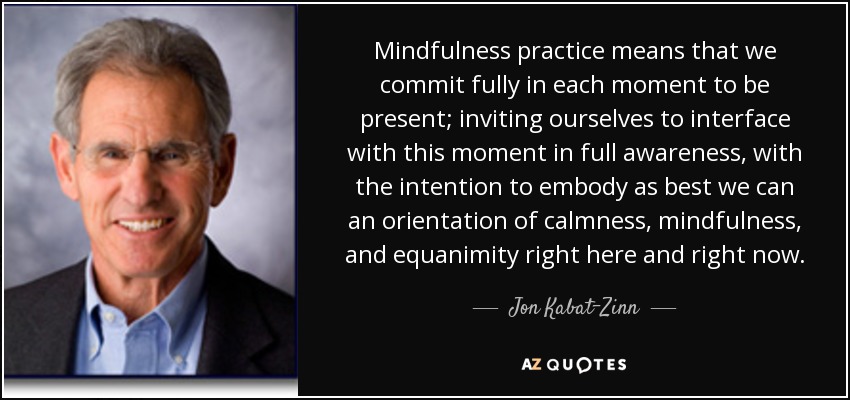 Mindfulness practice means that we commit fully in each moment to be present; inviting ourselves to interface with this moment in full awareness, with the intention to embody as best we can an orientation of calmness, mindfulness, and equanimity right here and right now.