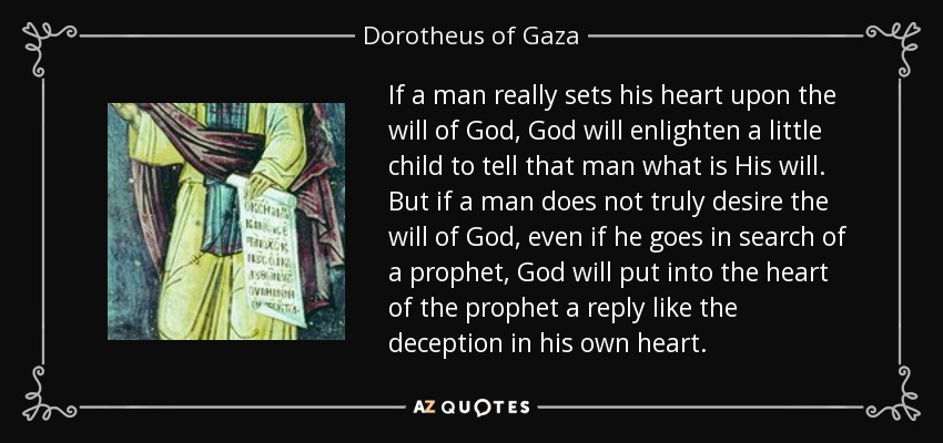 If a man really sets his heart upon the will of God, God will enlighten a little child to tell that man what is His will. But if a man does not truly desire the will of God, even if he goes in search of a prophet, God will put into the heart of the prophet a reply like the deception in his own heart.