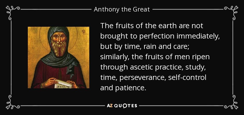 The fruits of the earth are not brought to perfection immediately, but by time, rain and care; similarly, the fruits of men ripen through ascetic practice, study, time, perseverance, self-control and patience.