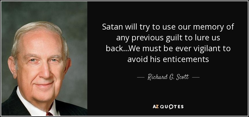 Satan will try to use our memory of any previous guilt to lure us back...We must be ever vigilant to avoid his enticements
