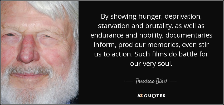 By showing hunger, deprivation, starvation and brutality, as well as endurance and nobility, documentaries inform, prod our memories, even stir us to action. Such films do battle for our very soul.