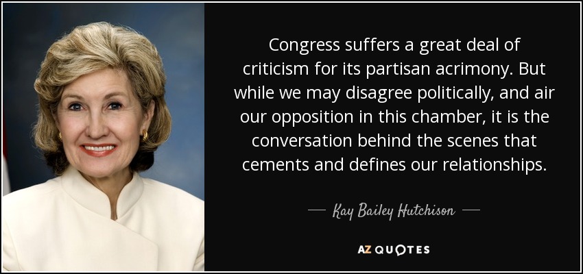 Congress suffers a great deal of criticism for its partisan acrimony. But while we may disagree politically, and air our opposition in this chamber, it is the conversation behind the scenes that cements and defines our relationships.