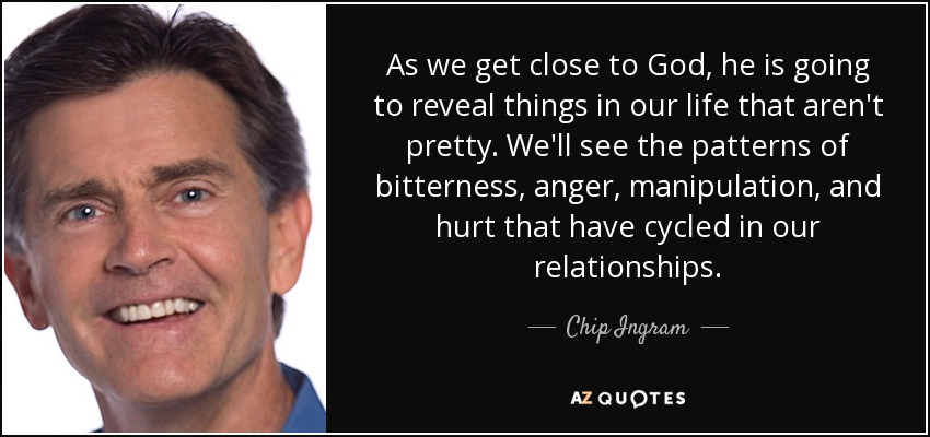 As we get close to God, he is going to reveal things in our life that aren't pretty. We'll see the patterns of bitterness, anger, manipulation, and hurt that have cycled in our relationships.