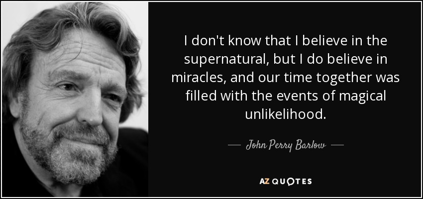I don't know that I believe in the supernatural, but I do believe in miracles, and our time together was filled with the events of magical unlikelihood.