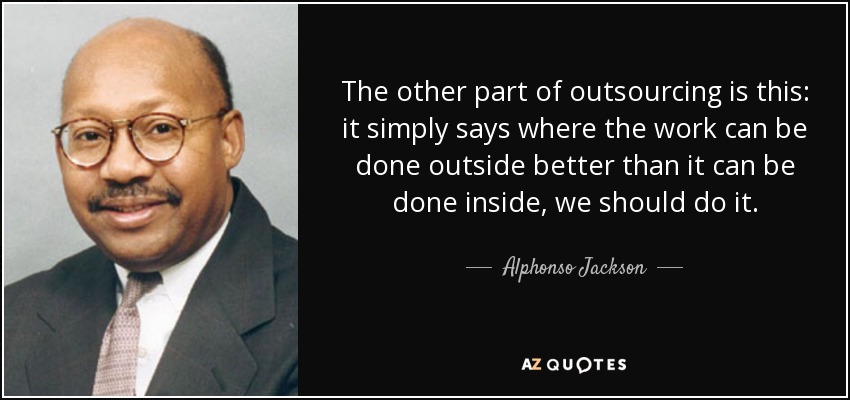 The other part of outsourcing is this: it simply says where the work can be done outside better than it can be done inside, we should do it.