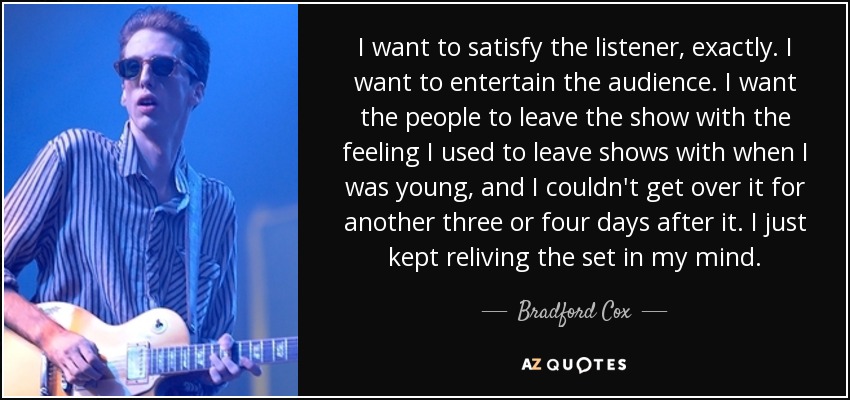 I want to satisfy the listener, exactly. I want to entertain the audience. I want the people to leave the show with the feeling I used to leave shows with when I was young, and I couldn't get over it for another three or four days after it. I just kept reliving the set in my mind.
