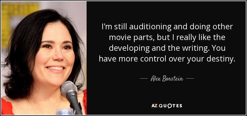 I'm still auditioning and doing other movie parts, but I really like the developing and the writing. You have more control over your destiny.