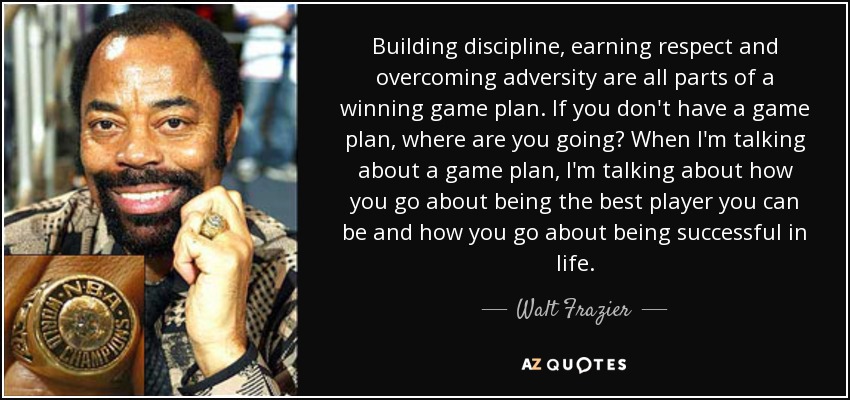 Building discipline, earning respect and overcoming adversity are all parts of a winning game plan. If you don't have a game plan, where are you going? When I'm talking about a game plan, I'm talking about how you go about being the best player you can be and how you go about being successful in life.