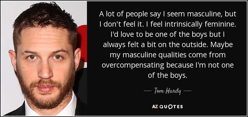 A lot of people say I seem masculine, but I don't feel it. I feel intrinsically feminine. I'd love to be one of the boys but I always felt a bit on the outside. Maybe my masculine qualities come from overcompensating because I'm not one of the boys.