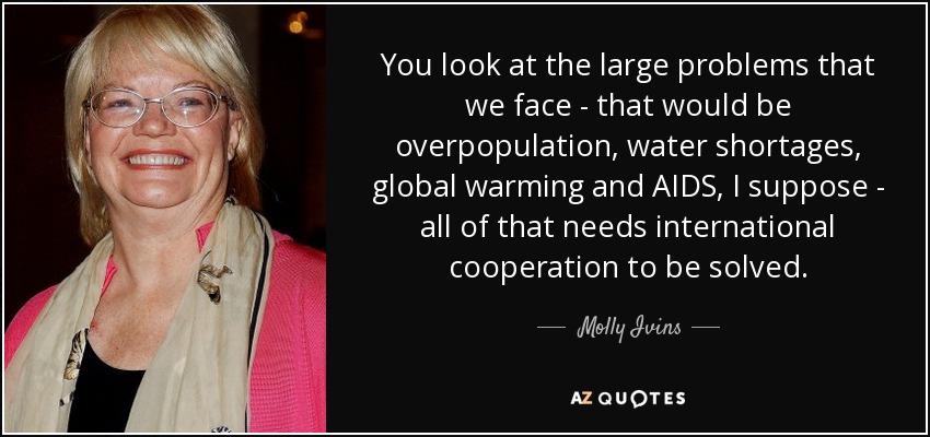 You look at the large problems that we face - that would be overpopulation, water shortages, global warming and AIDS, I suppose - all of that needs international cooperation to be solved.