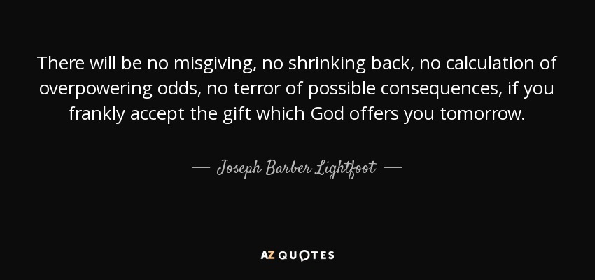 There will be no misgiving, no shrinking back, no calculation of overpowering odds, no terror of possible consequences, if you frankly accept the gift which God offers you tomorrow.