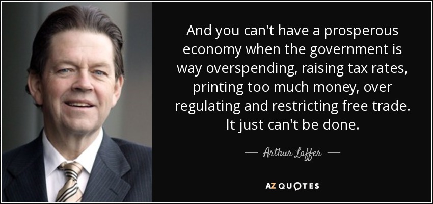 And you can't have a prosperous economy when the government is way overspending, raising tax rates, printing too much money, over regulating and restricting free trade. It just can't be done.