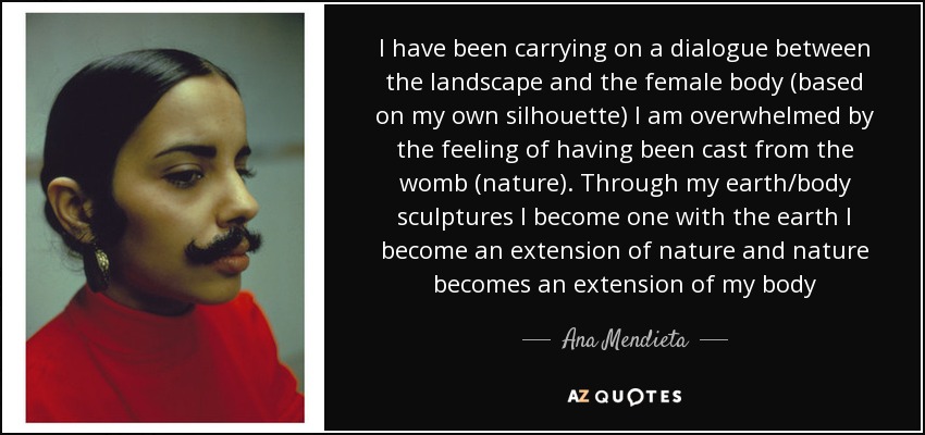 I have been carrying on a dialogue between the landscape and the female body (based on my own silhouette) I am overwhelmed by the feeling of having been cast from the womb (nature). Through my earth/body sculptures I become one with the earth I become an extension of nature and nature becomes an extension of my body