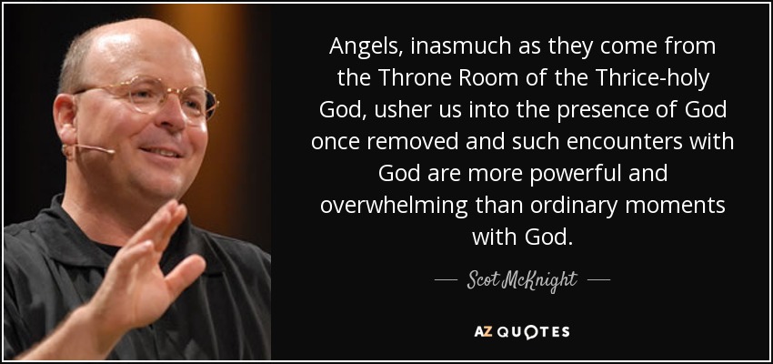 Angels, inasmuch as they come from the Throne Room of the Thrice-holy God, usher us into the presence of God once removed and such encounters with God are more powerful and overwhelming than ordinary moments with God.