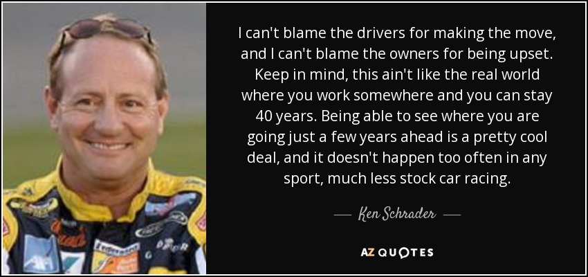 I can't blame the drivers for making the move, and I can't blame the owners for being upset. Keep in mind, this ain't like the real world where you work somewhere and you can stay 40 years. Being able to see where you are going just a few years ahead is a pretty cool deal, and it doesn't happen too often in any sport, much less stock car racing.