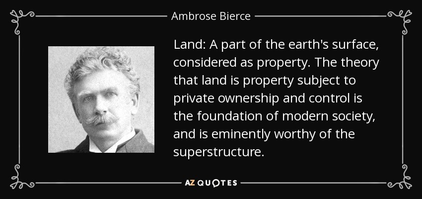Land: A part of the earth's surface, considered as property. The theory that land is property subject to private ownership and control is the foundation of modern society, and is eminently worthy of the superstructure.