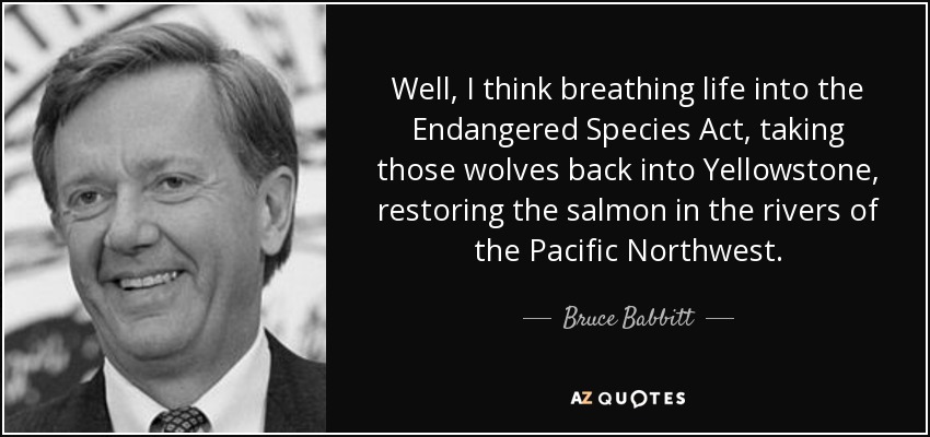 Well, I think breathing life into the Endangered Species Act, taking those wolves back into Yellowstone, restoring the salmon in the rivers of the Pacific Northwest.