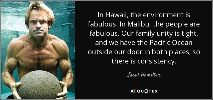 In Hawaii, the environment is fabulous. In Malibu, the people are fabulous. Our family unity is tight, and we have the Pacific Ocean outside our door in both places, so there is consistency.