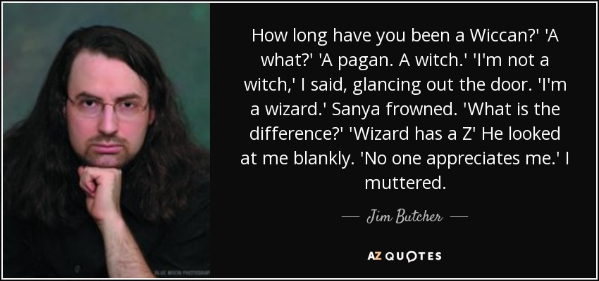 How long have you been a Wiccan?' 'A what?' 'A pagan. A witch.' 'I'm not a witch,' I said, glancing out the door. 'I'm a wizard.' Sanya frowned. 'What is the difference?' 'Wizard has a Z' He looked at me blankly. 'No one appreciates me.' I muttered.
