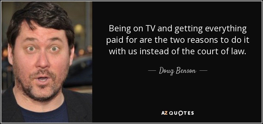 Being on TV and getting everything paid for are the two reasons to do it with us instead of the court of law.