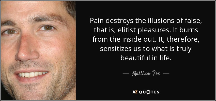 Pain destroys the illusions of false, that is, elitist pleasures. It burns from the inside out. It, therefore, sensitizes us to what is truly beautiful in life.