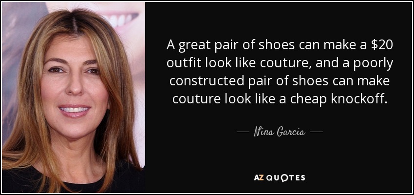 A great pair of shoes can make a $20 outfit look like couture, and a poorly constructed pair of shoes can make couture look like a cheap knockoff.