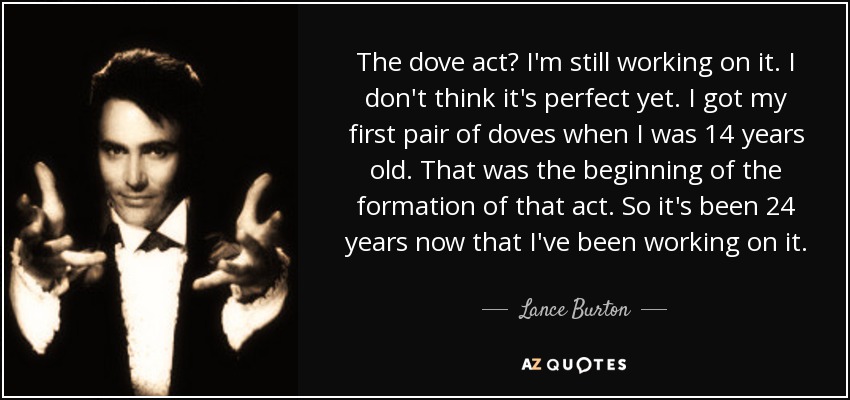 The dove act? I'm still working on it. I don't think it's perfect yet. I got my first pair of doves when I was 14 years old. That was the beginning of the formation of that act. So it's been 24 years now that I've been working on it.