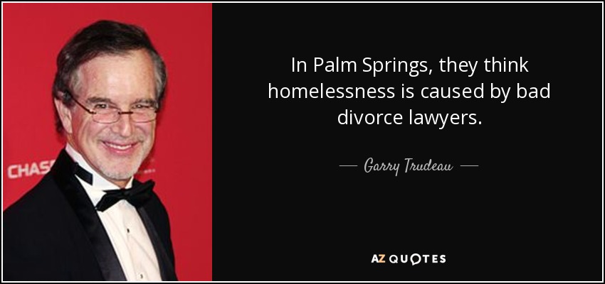 In Palm Springs, they think homelessness is caused by bad divorce lawyers.