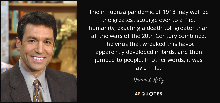 The influenza pandemic of 1918 may well be the greatest scourge ever to afflict humanity, exacting a death toll greater than all the wars of the 20th Century combined. The virus that wreaked this havoc apparently developed in birds, and then jumped to people. In other words, it was avian flu.