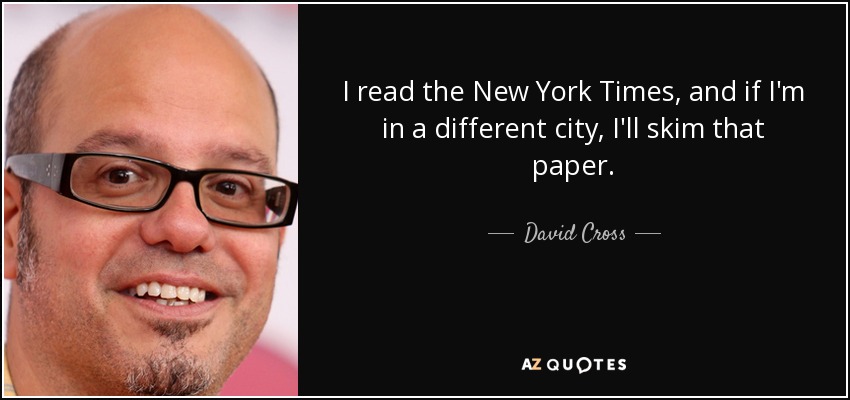 I read the New York Times, and if I'm in a different city, I'll skim that paper.