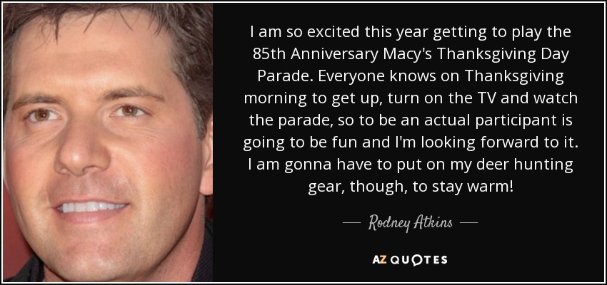 I am so excited this year getting to play the 85th Anniversary Macy's Thanksgiving Day Parade. Everyone knows on Thanksgiving morning to get up, turn on the TV and watch the parade, so to be an actual participant is going to be fun and I'm looking forward to it. I am gonna have to put on my deer hunting gear, though, to stay warm!