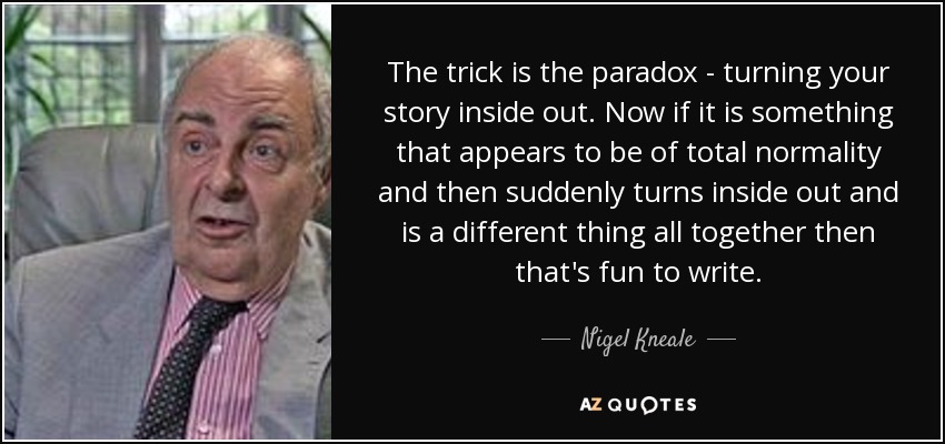The trick is the paradox - turning your story inside out. Now if it is something that appears to be of total normality and then suddenly turns inside out and is a different thing all together then that's fun to write.