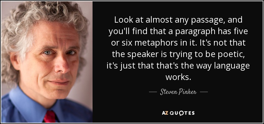 Look at almost any passage, and you'll find that a paragraph has five or six metaphors in it. It's not that the speaker is trying to be poetic, it's just that that's the way language works.