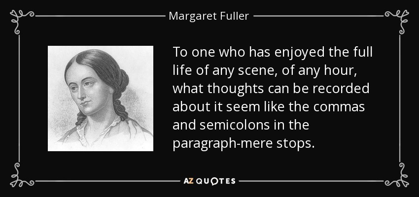 To one who has enjoyed the full life of any scene, of any hour, what thoughts can be recorded about it seem like the commas and semicolons in the paragraph-mere stops.