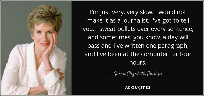 I'm just very, very slow. I would not make it as a journalist, I've got to tell you. I sweat bullets over every sentence, and sometimes, you know, a day will pass and I've written one paragraph, and I've been at the computer for four hours.
