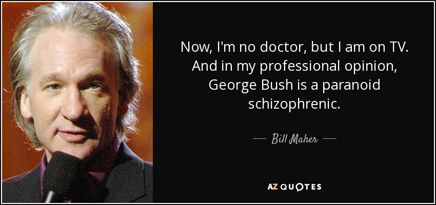 Now, I'm no doctor, but I am on TV. And in my professional opinion, George Bush is a paranoid schizophrenic.