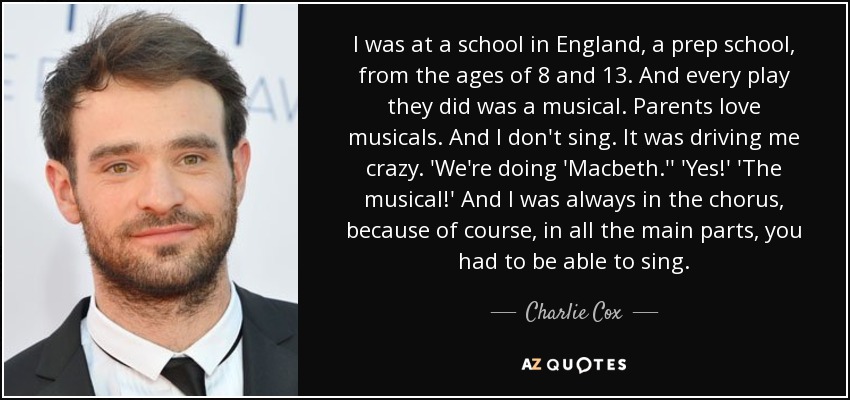 I was at a school in England, a prep school, from the ages of 8 and 13. And every play they did was a musical. Parents love musicals. And I don't sing. It was driving me crazy. 'We're doing 'Macbeth.'' 'Yes!' 'The musical!' And I was always in the chorus, because of course, in all the main parts, you had to be able to sing.