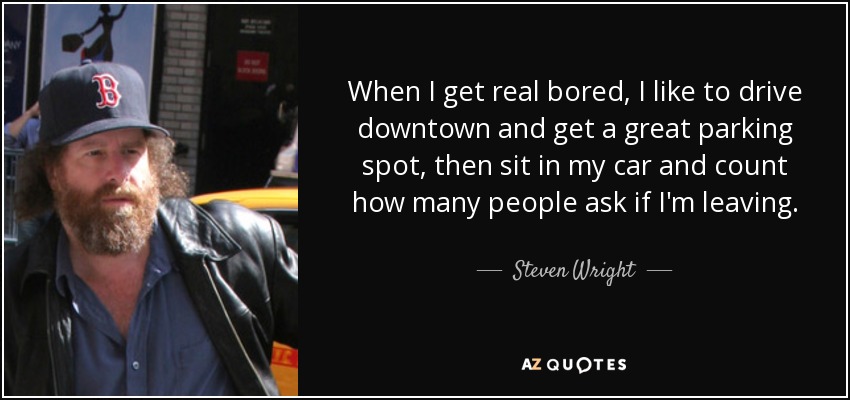 When I get real bored, I like to drive downtown and get a great parking spot, then sit in my car and count how many people ask if I'm leaving.