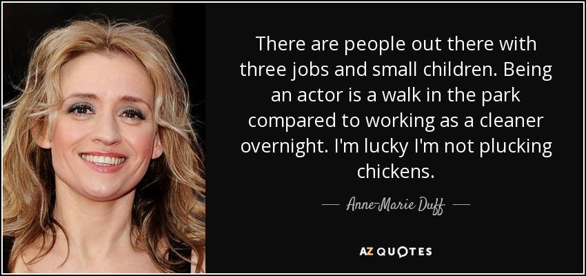 There are people out there with three jobs and small children. Being an actor is a walk in the park compared to working as a cleaner overnight. I'm lucky I'm not plucking chickens.