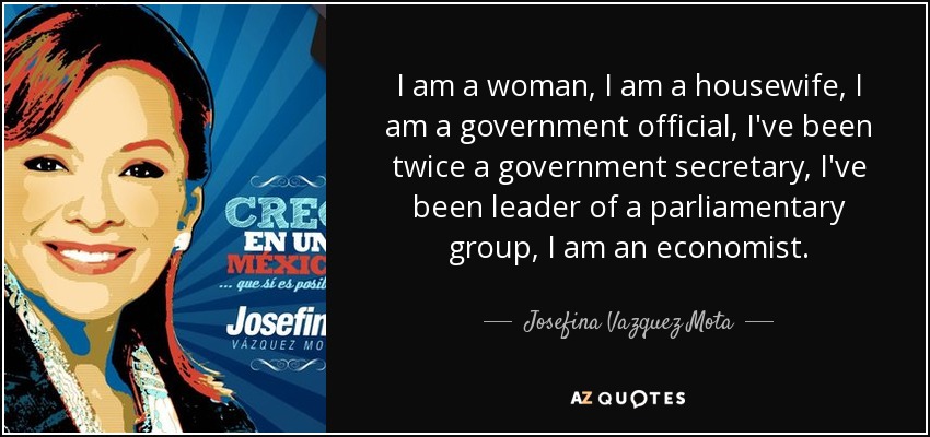 I am a woman, I am a housewife, I am a government official, I've been twice a government secretary, I've been leader of a parliamentary group, I am an economist.